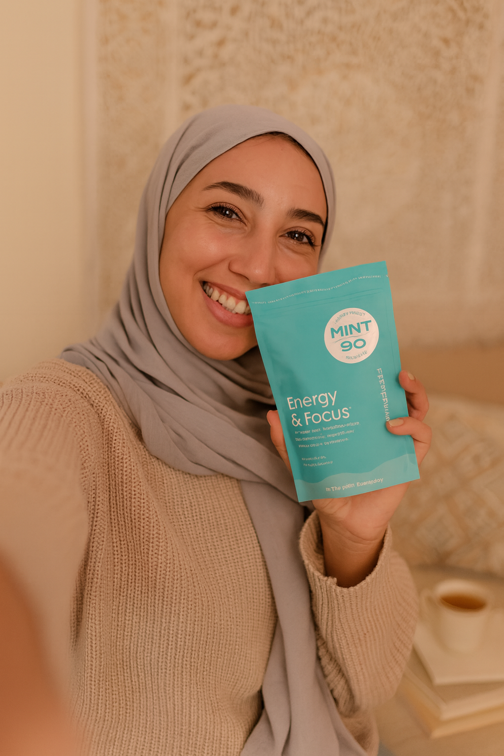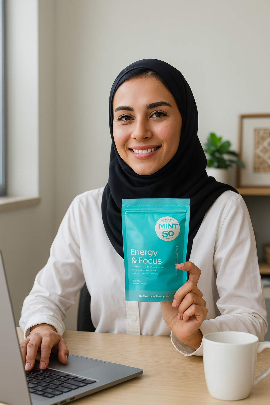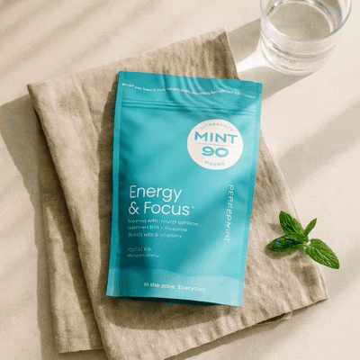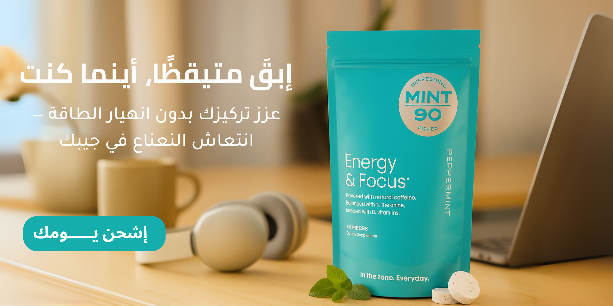 علكة طبيعية بطعم النعناع، تمنحك تركيز وطاقة فورية بدون توتر أو انهيار بعدين.